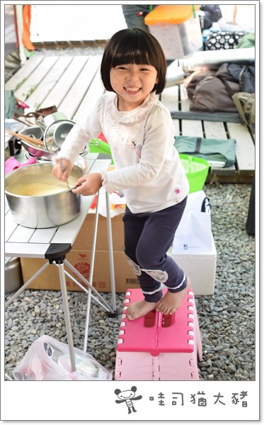 荳荳也來幫忙 攪拌攪拌,荳荳開心的腳都翹起來了呢!