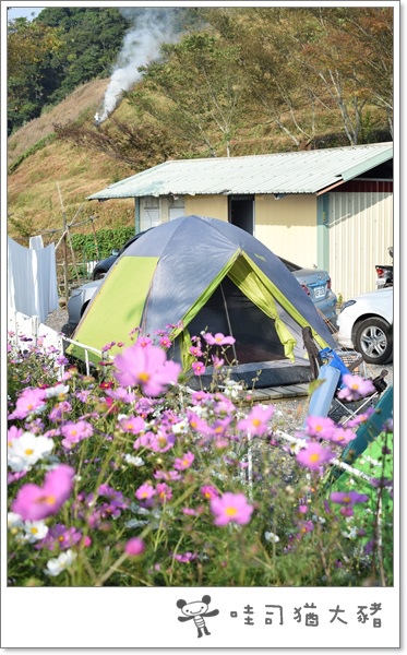 帳蓬前 就有波斯菊~ 很美吧!