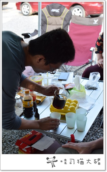 在吃下午茶的同時,我們就邊搭帳篷搂