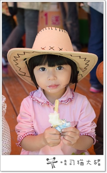 可愛的荳荳,正在演小牛仔歐!