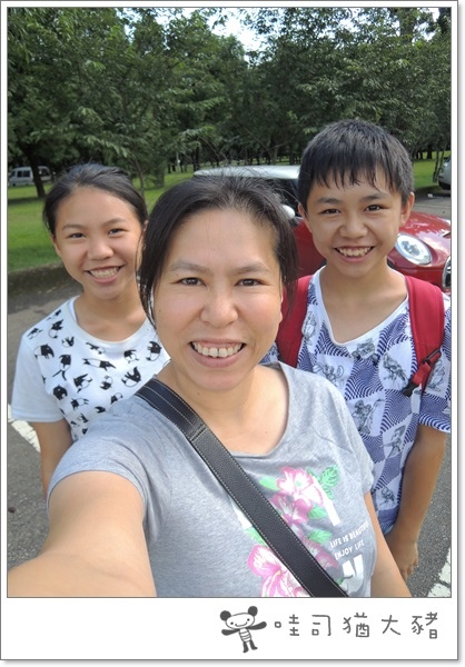 車子停好~ 三母子來張自拍, 小威小恩很賊耶, 居然躲在後面.