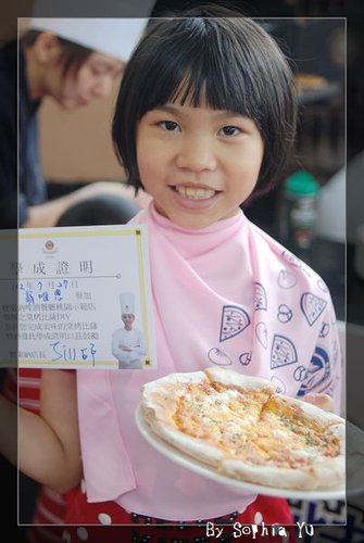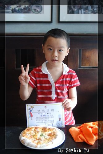 鈞鈞開心的展示 他的pizza & 證書!!!