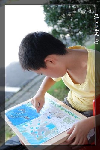 今天帶小葳小恩到宮司參加寫生比賽,阿晴也有報名歐!