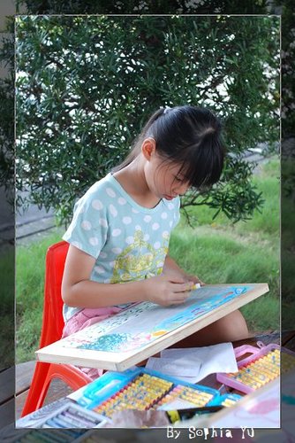 他們 在畫畫~ 葳葳也沒閒著,拿著烏客麗麗交朋友!