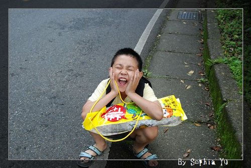 從妖怪村走回溪頭,小葳累的 耍賴了。