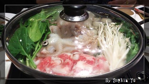 這個餐廳 很推薦的一道湯 ~活章魚牛肉火鍋。