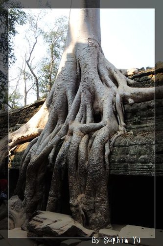 塔普倫廟 有很多樹,都在建築物上面。