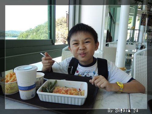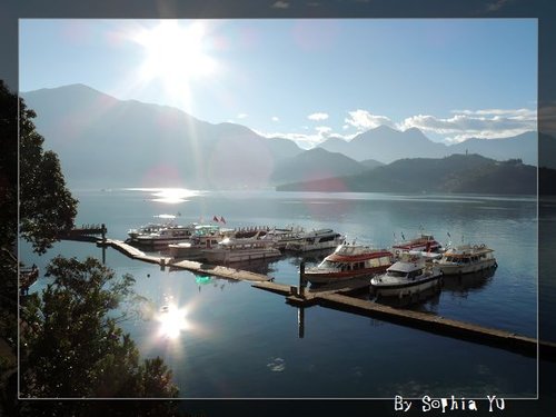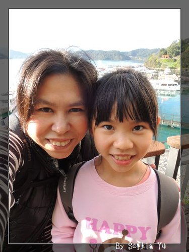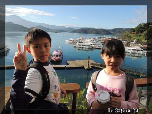 在日月潭 晃完了之後,小葳說要開車上九族文化村。