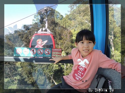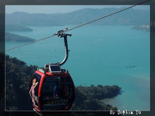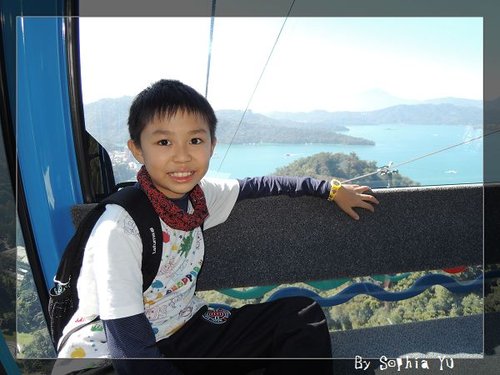 玩了幾樣 遊樂設施,我們就是 搭乘 日月潭 纜車摟。