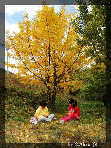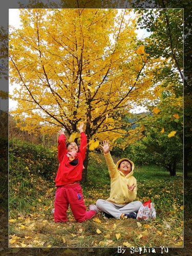 這是 猶大豬 第一次看到 金黃色的 銀杏