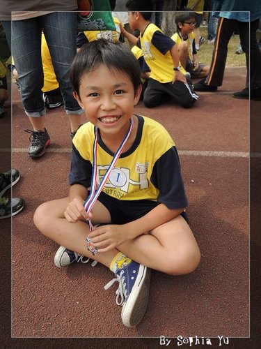 小葳 也在 八十公尺的 賽跑 得到 第二名。