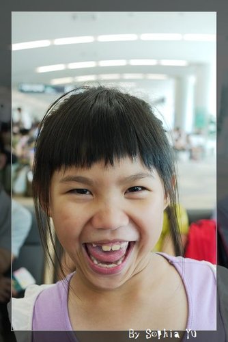 在福岡機場,小恩說 你看 我最新學會的 鬼臉。