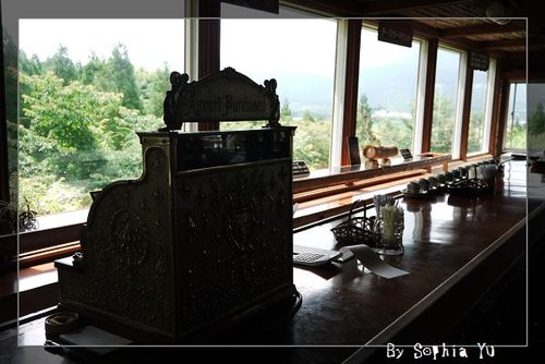 可以 看到 群山的 美景,還有 這特別的 收銀台。