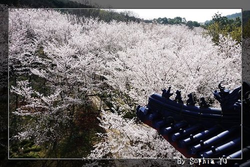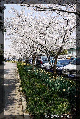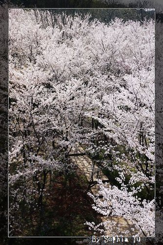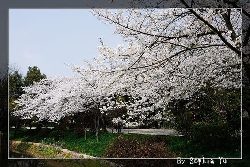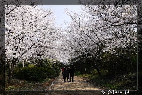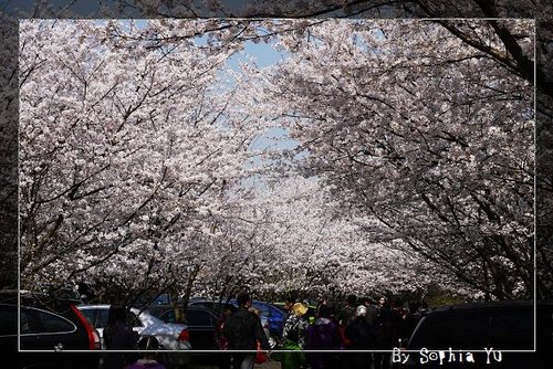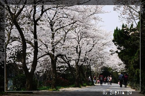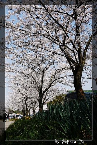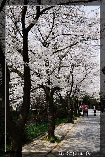 除了 美,我說不出其它的話了,因為這裡的櫻花 是一大片,或是 一整排。