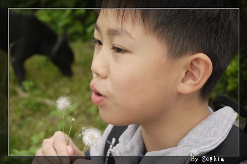 在室內,光線不這麼強了,小恩終於把 眼鏡拿下來了。