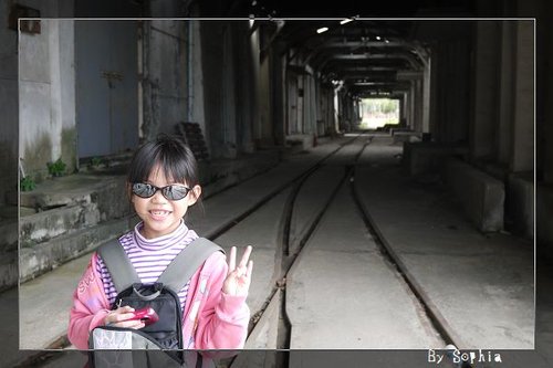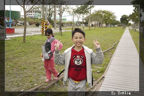 我們 在糖廠 亂逛,小葳小恩開心的走在鐵軌上。