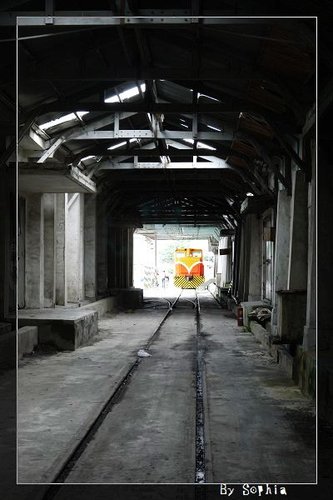 糖廠 有一個 火車頭,不知道 還可不可以動。