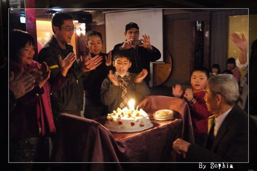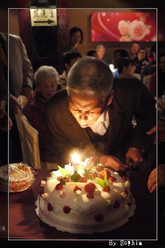大家 開心的幫阿公唱 生日快樂歌。