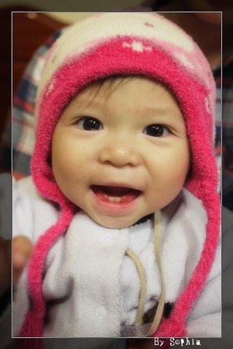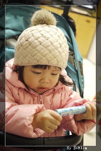 大眼妹 一號 ~ 晴晴,現在手上有吃的,暫時忘記 他頭上有帽子。