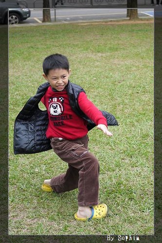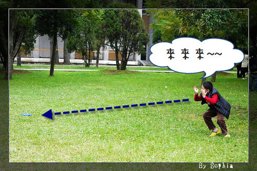 小威 丟飛盤的樣子,很好笑。