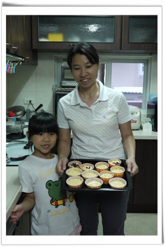 嘻嘻,威威跟小恩 準備要把蛋糕進烤箱摟