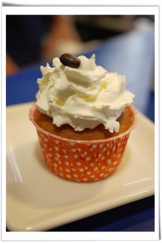 咖啡口味的 杯子蛋糕 加上 鮮奶油,真的是說不出的好滋味阿...