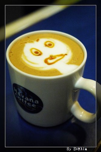 平常日 到阿弟 咖啡店 幫忙,阿弟今天做了一個 小人兒 拿鐵。