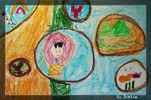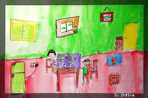 有天猶大豬在書房的桌子底下發現的,小威 低年級的畫畫作品...