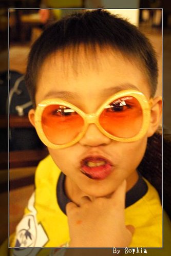 小威 吃的跟黑嘴狗一樣,還帶起牛妹的太陽眼鏡。