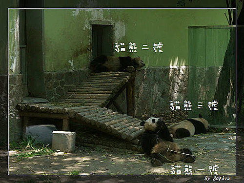 原來 貓熊 是不洗澡的,每隻都玩得很髒。一號,你的坐像 好像不太好! 二號,你的睡姿也是。三號,你太誇張了吧。