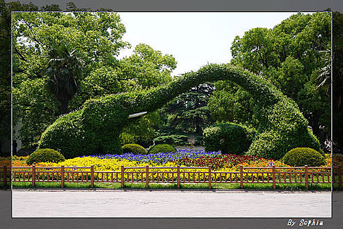 動物園的園藝技術也是很棒的,大象爸爸大象媽媽相親相愛,看的小象都害羞了起來阿!