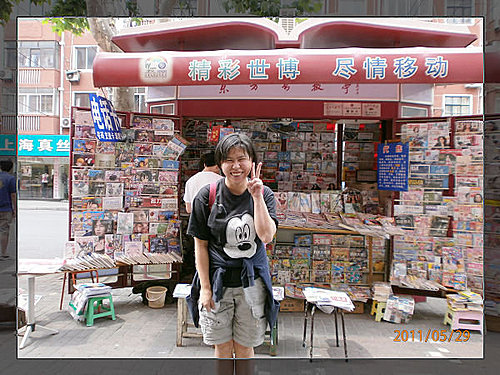 回田林賓館的路上,有個書報攤,猶大豬在前面搞起笑來了,笑的眼睛都不見了…
