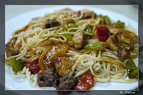 猶大豬的雞肉炒麵,好吃是好吃,可惜油了一點。