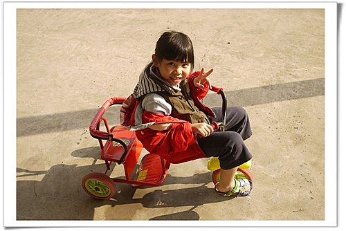 開心了,有車子騎了。