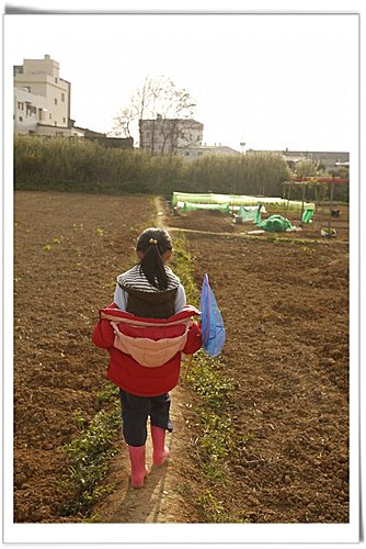 提著菜菜,我們要回家摟,晚餐有新鮮的菜可以吃摟。