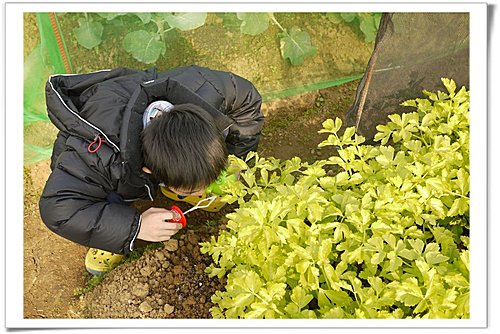 小恩正在拔A菜歐。