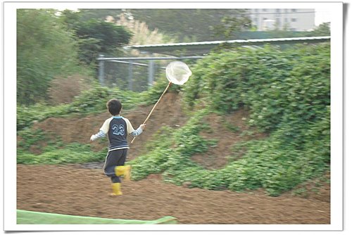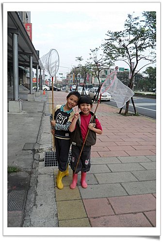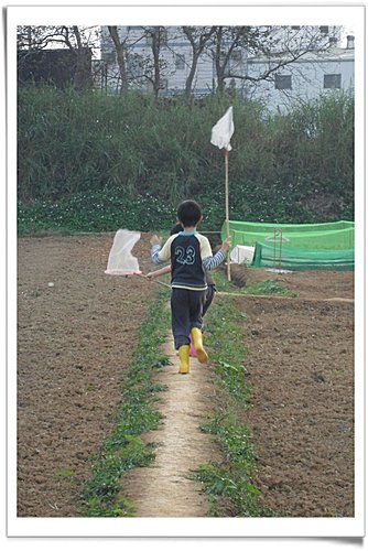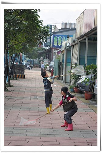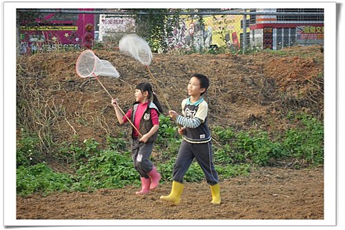 今天怕他們倆兄妹無聊,翁爸比還把網子找出來,讓他們去抓蝴蝶。