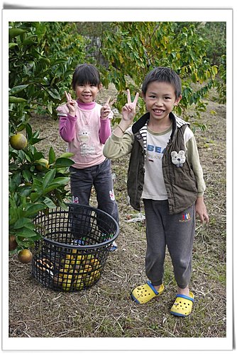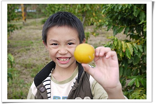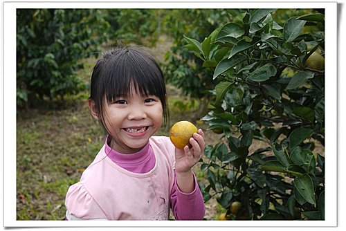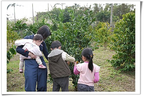 小威小恩正在採柳丁,牛妹也在一旁觀摩歐。