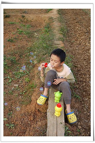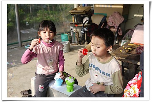 這兩兄妹,採了幾個柳丁就跑回小房子玩吹泡泡了。