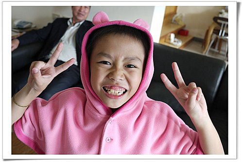 進去房子裡面,很大的歐。小威穿著牛妹的斗篷,哈哈哈。