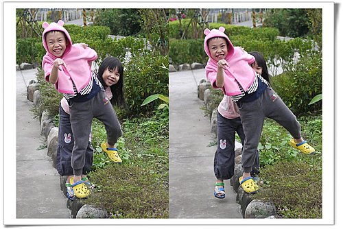小威小恩在前面的院子搞怪。
