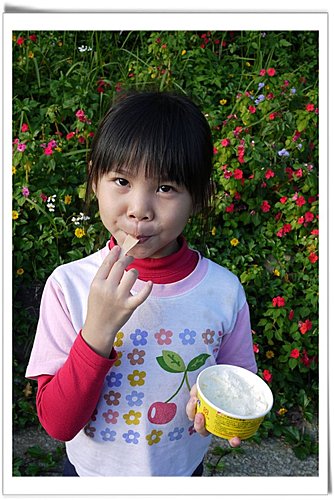 小恩非常的開心吃著冰淇淋,因為這是她的獎勵 (她走完東眼山全程歐)