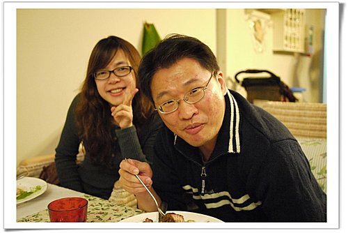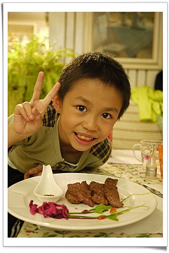 終於到晚餐時刻了,小威又把我的牛排搶走了。