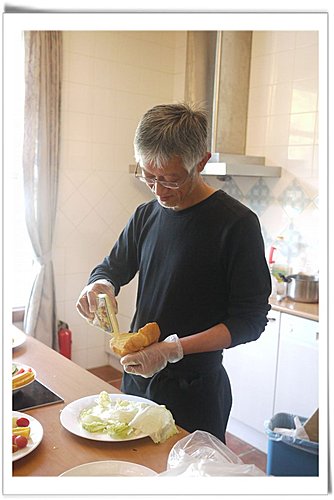 老闆正努力的做我們的早餐,他的壓力一定很大吧。