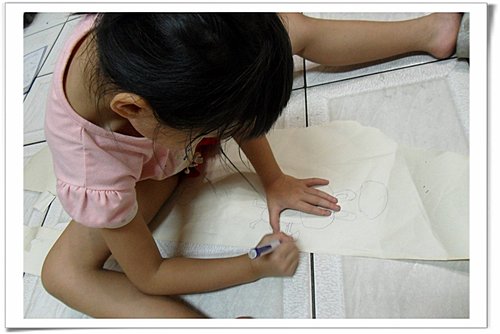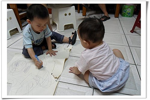小朋友又去拿紙出來畫畫摟,我們就坐在地上畫畫摟。