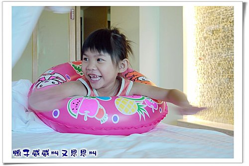 小恩妹妹正在游泳歐,左邊是 白色海浪歐。