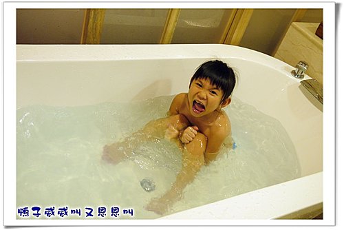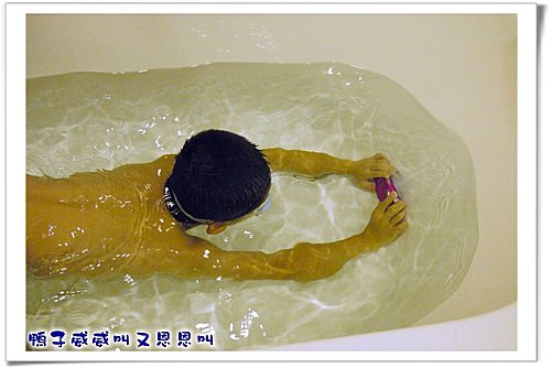 在浴缸玩水。