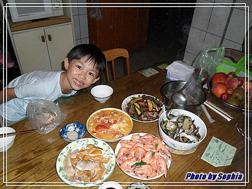 小威已經等不及開飯就先吃起來了歐。
