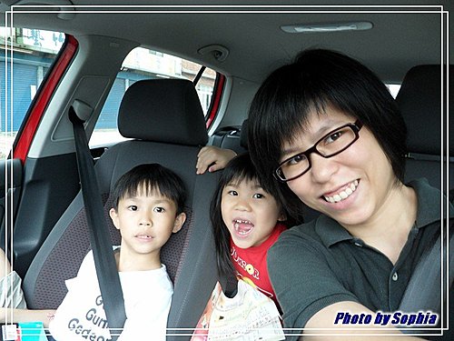 趁著等紅燈,三母子來張自拍吧。