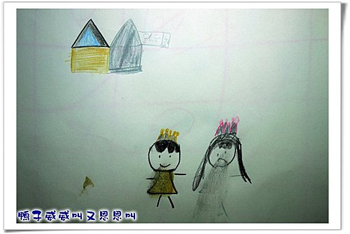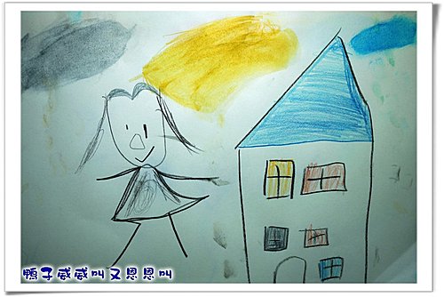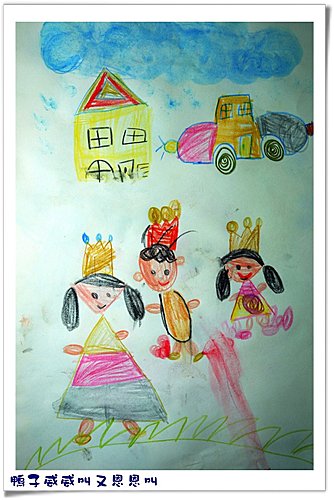 這是小恩畫的,畫我們三母子自己開車去摩斯漢堡吃早餐。